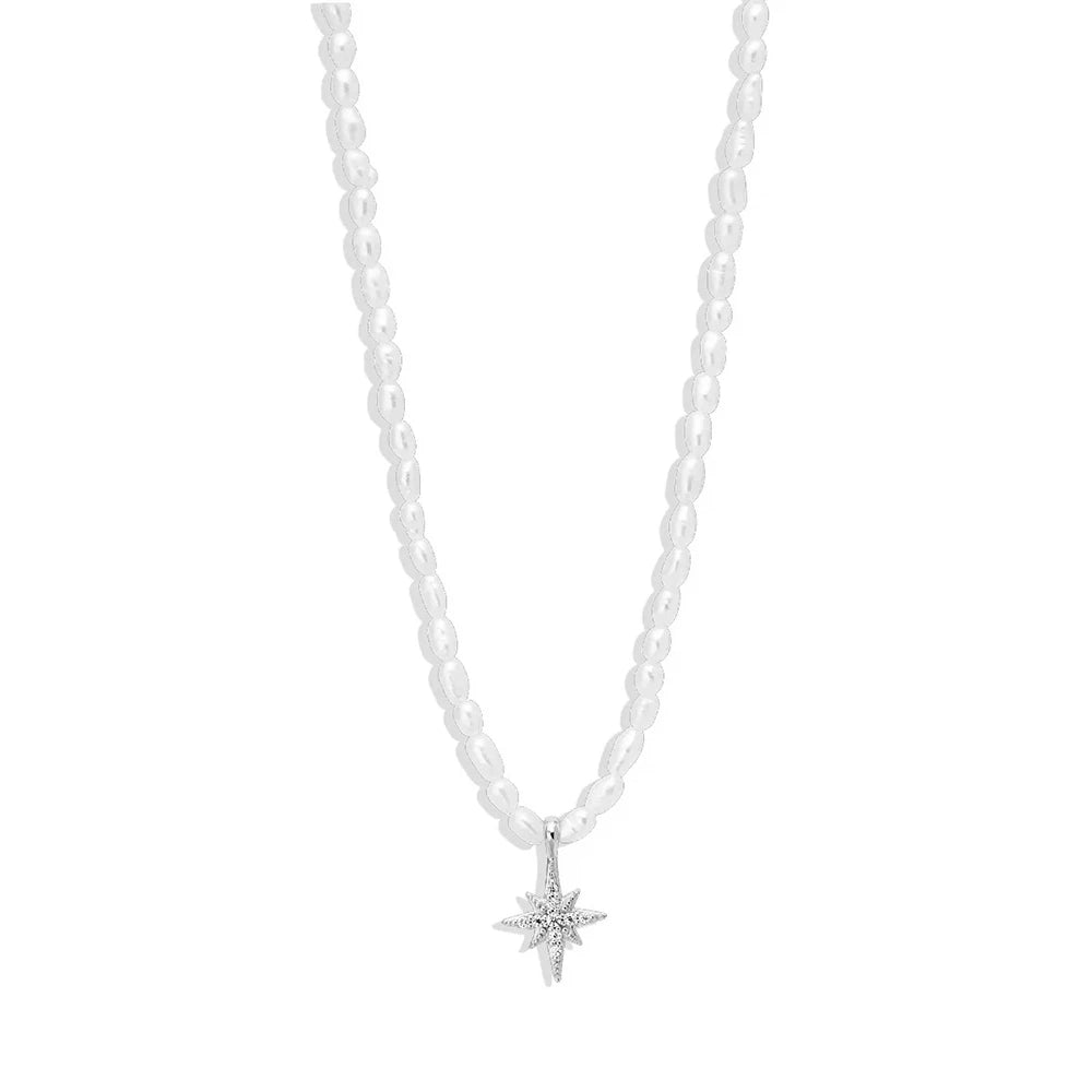 Classic 925 Silver Cross Necklace With Pearls