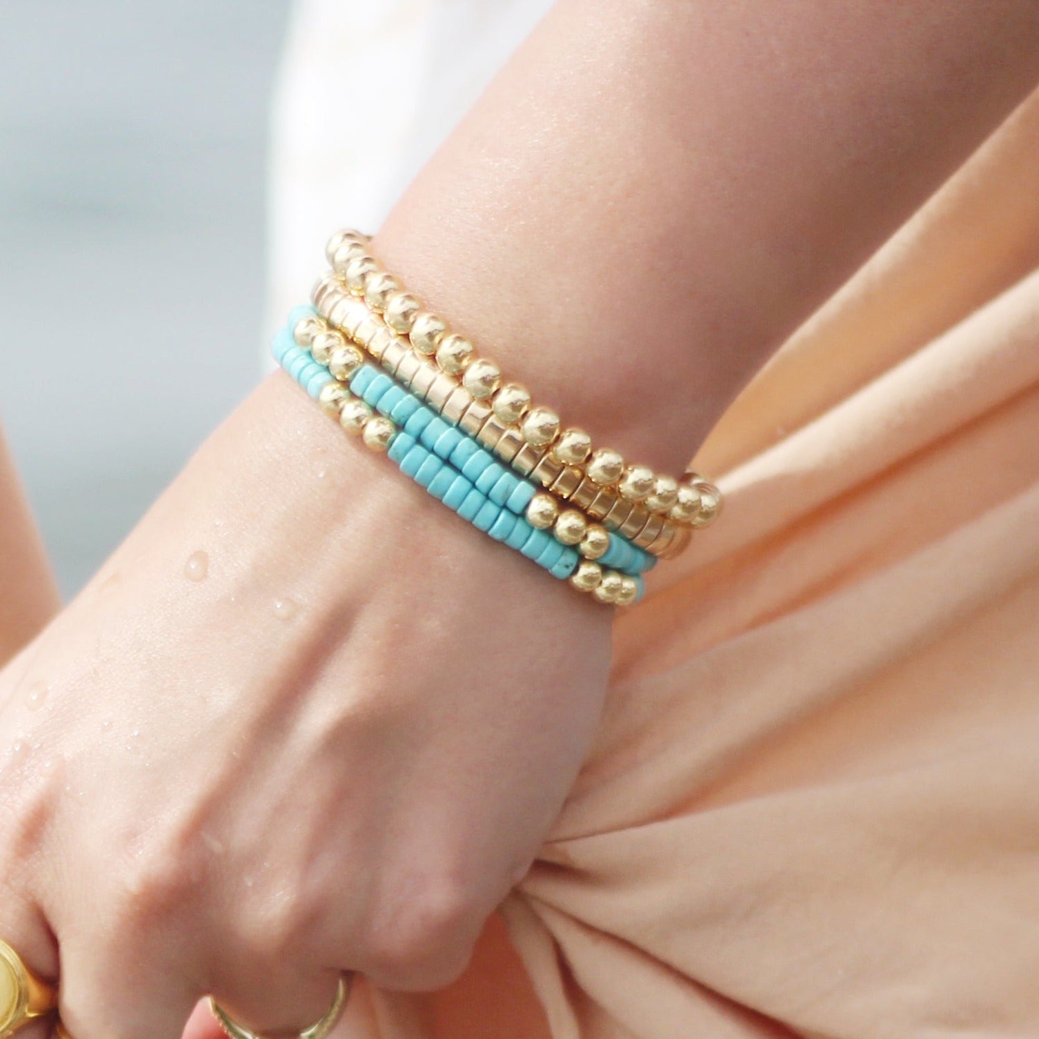 Our Stacking Bracelets are all individual bracelets brought together to make curated sets. You can wear them all together, individually or even mixed-and-matched with your other favorite pieces.