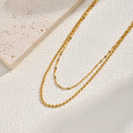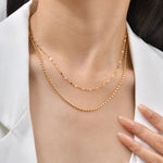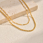 Effortlessly chic - our Layered Bead Chain Necklace. This minimalist double-layer design features a delicate lip chain paired with olive beads for a modern look.
