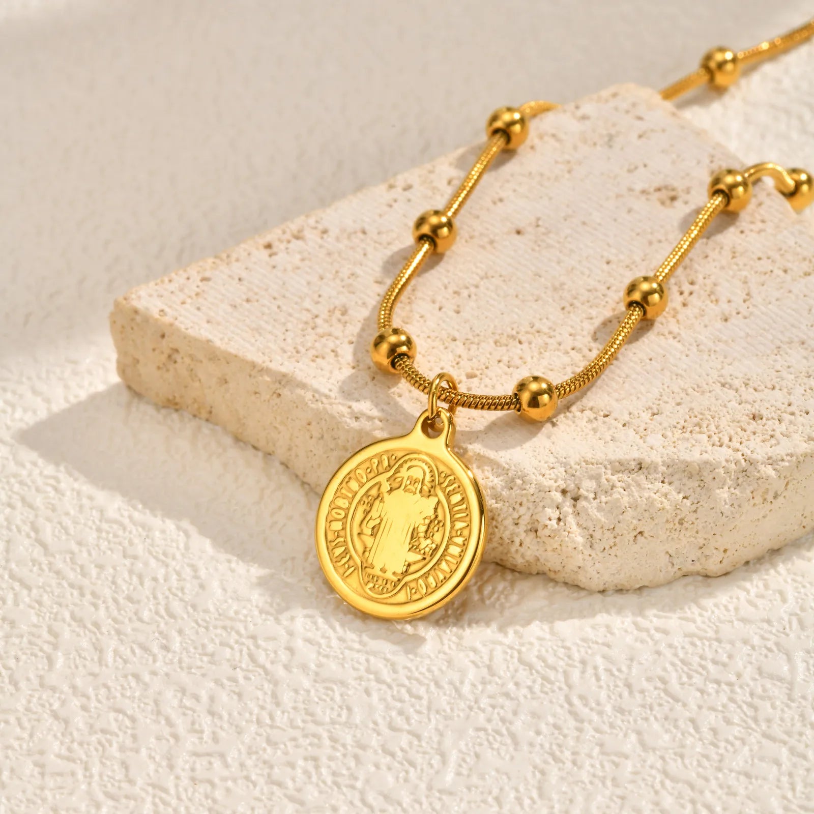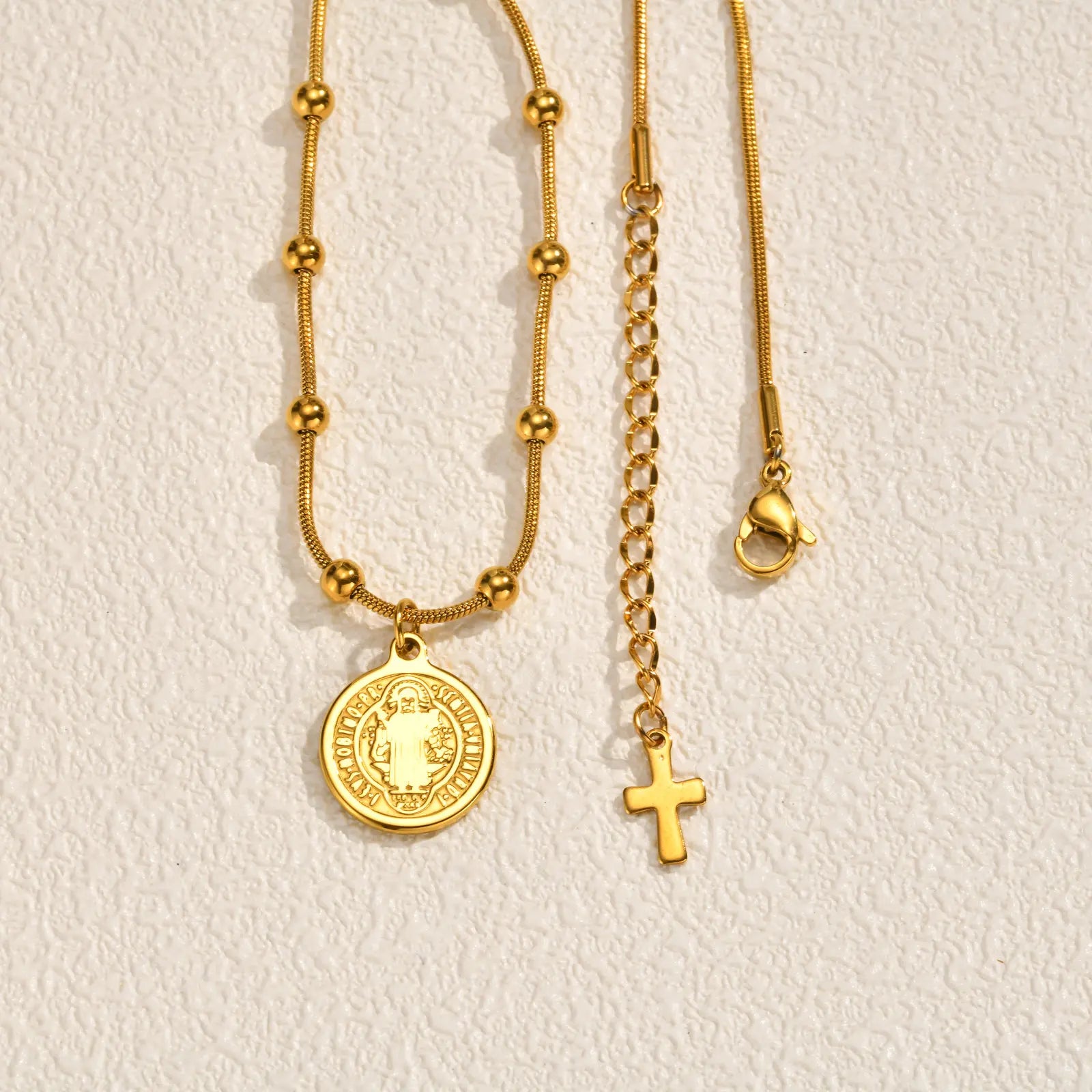 A beautiful symbol of faith - our Saint Benedict Medal Necklace. This meaningful piece features the traditional Saint Benedict medal on a delicate beaded chain.
