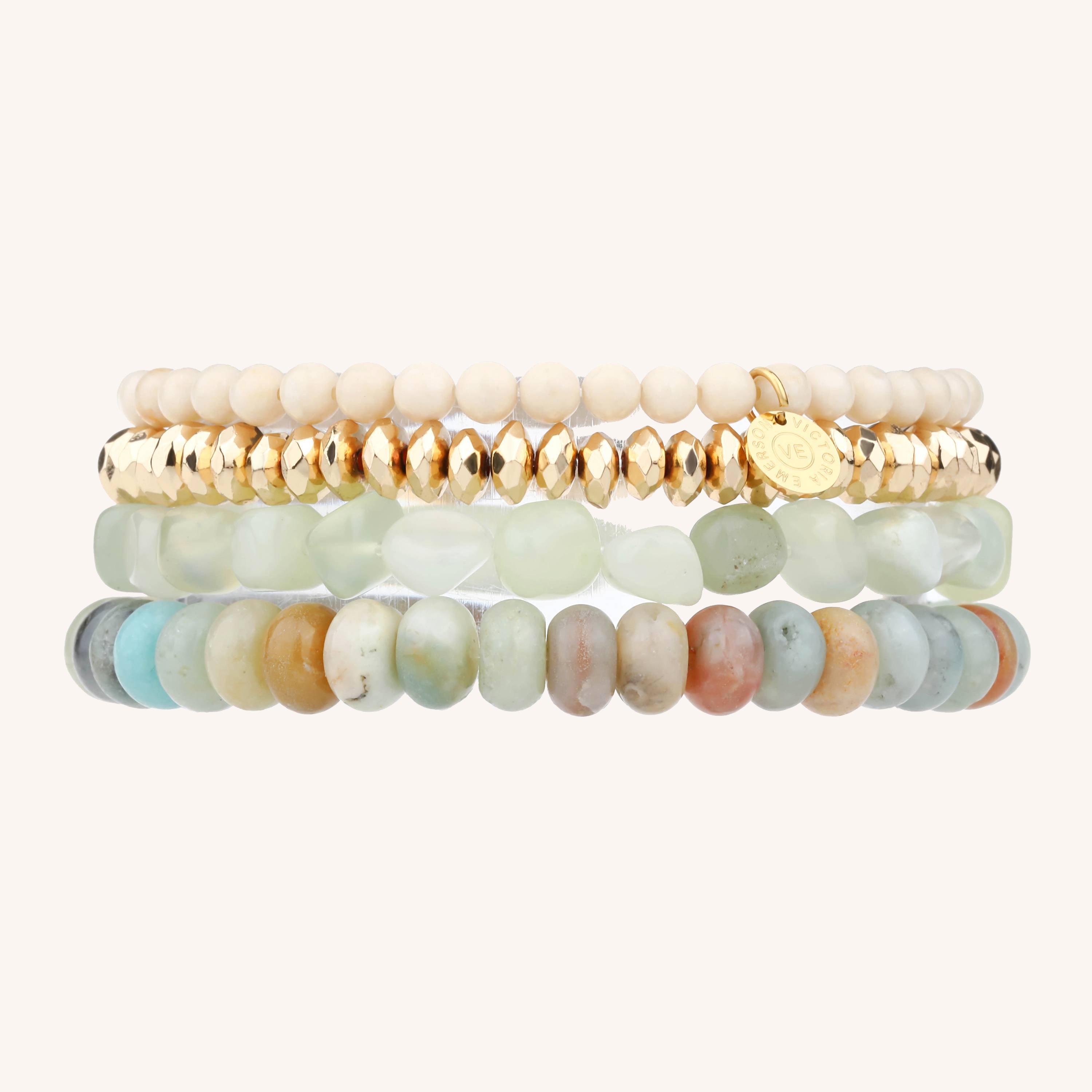 14K Gold Beaded Sphere Bracelet Stackable Set