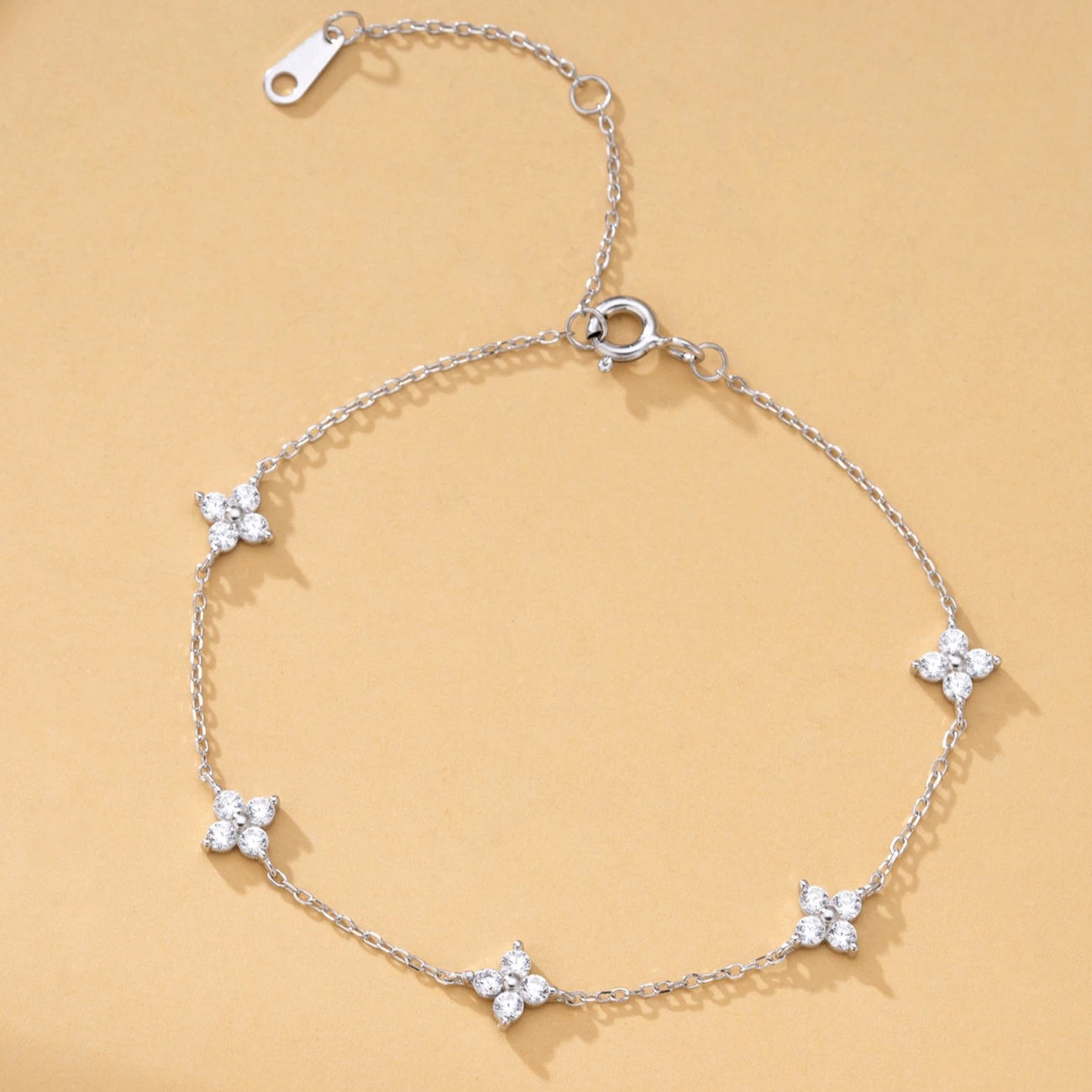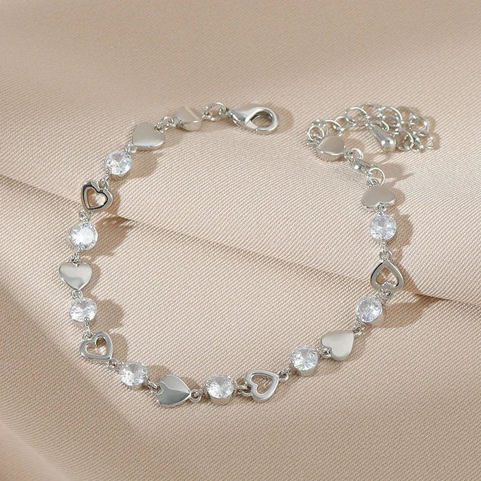 Add a touch of luck to your look with our Lucky Clover Crystal Bracelet. Featuring a delicate four-leaf clover design adorned with sparkling cubic zirconia on an adjustable chain.