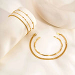 A timeless stack designed for effortless styling. The Classic Gold Stack Bracelet Set features a curated mix of slim chains, textured links, and a sleek cuff bangle for a balanced, polished look.