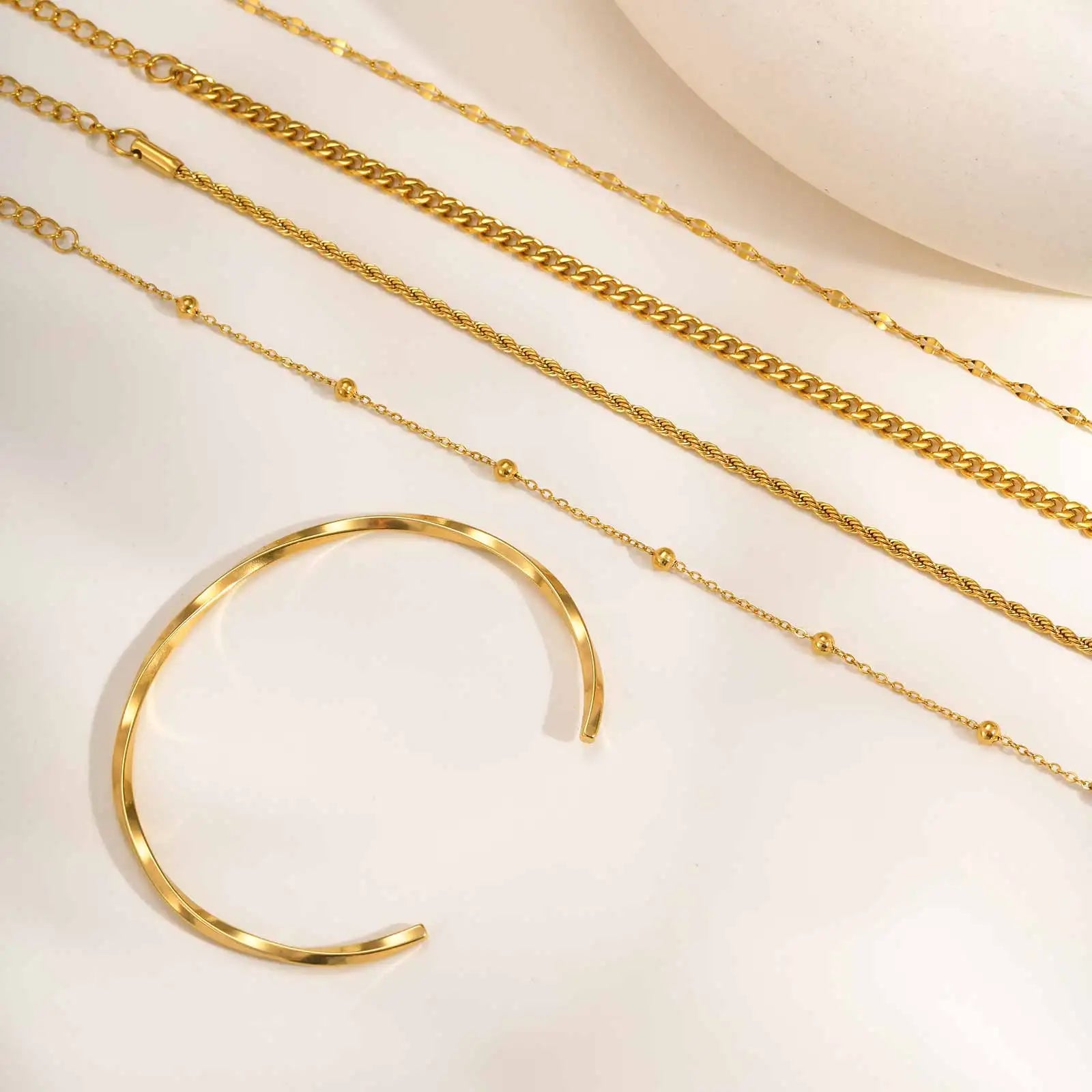 Finished in durable gold plating, these bracelets are made to resist fading and maintain their shine. Crafted from stainless steel, they are waterproof, lightweight, and comfortable for all-day wear. Nickel-free, lead-free, and hypoallergenic, this set is designed for versatility and longevity.