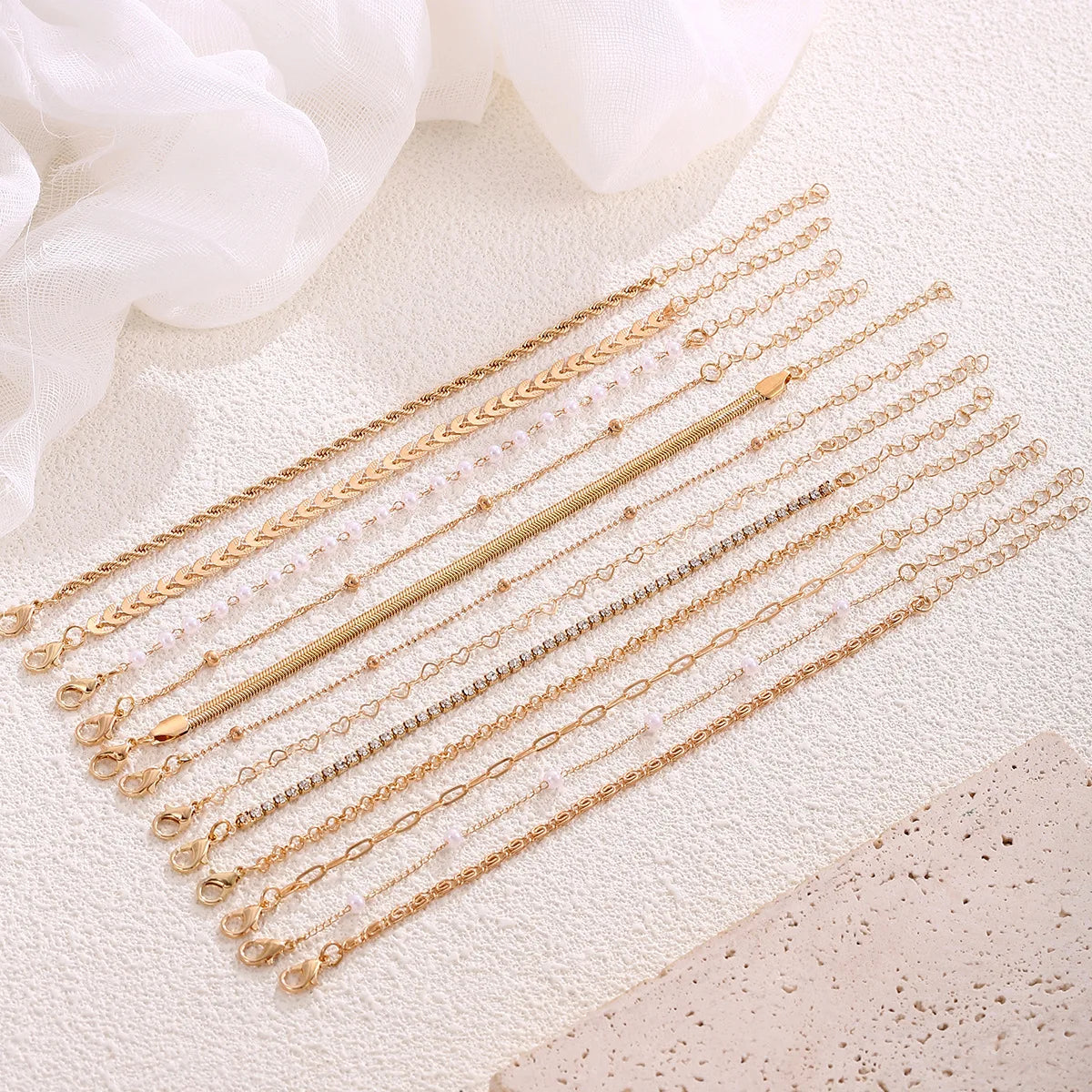 Boho Multi-Layer Bracelet Set — Snake Chain & Rhinestone Claw Chain
