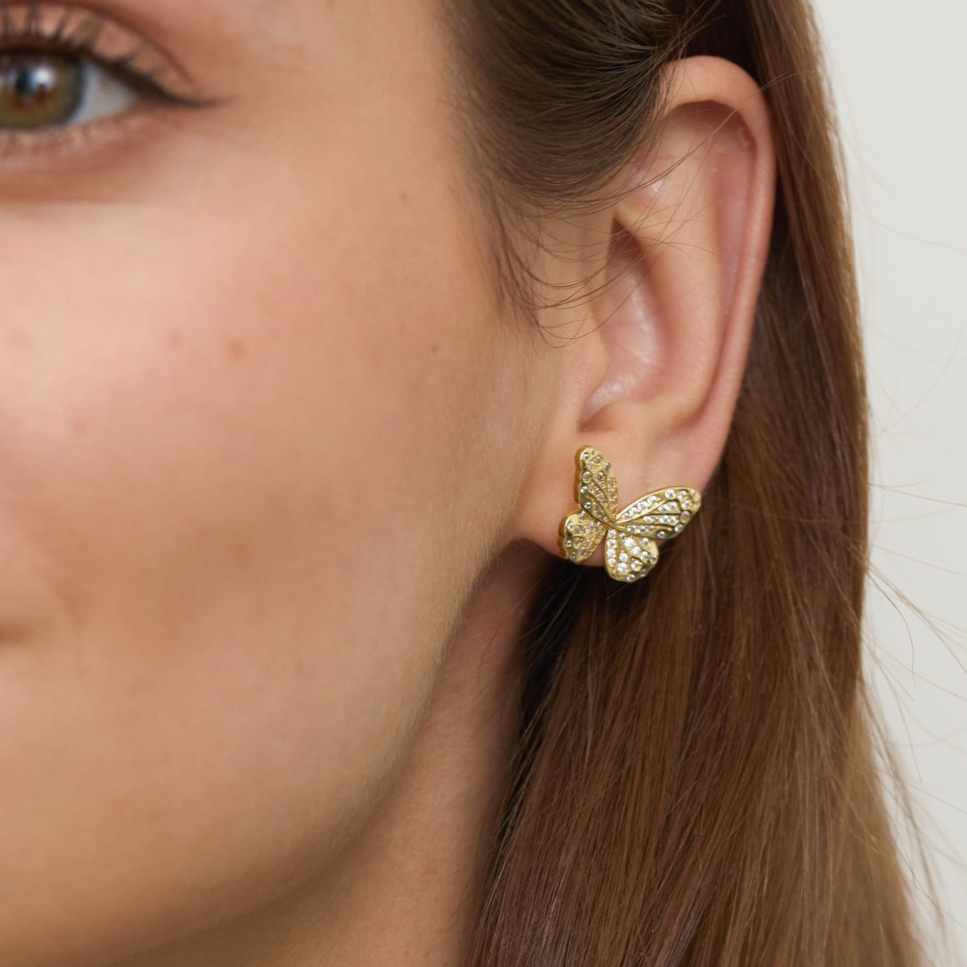 Transform your style with our Butterfly Stud Earrings. These earrings feature a delicate butterfly pendant, adding a touch of whimsy and playfulness to any outfit. Perfect for nature lovers or anyone looking to add a unique statement piece to their jewelry collection.