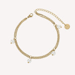 Add a touch of whimsy to your step with the Clarissa Pearl Anklet. Delicately draping pearls cascade around your ankle, creating a playful shimmer that catches every eye. Perfect for dancing through sunny days or sparkling nights, this anklet brings a charming, lighthearted elegance to any outfit.