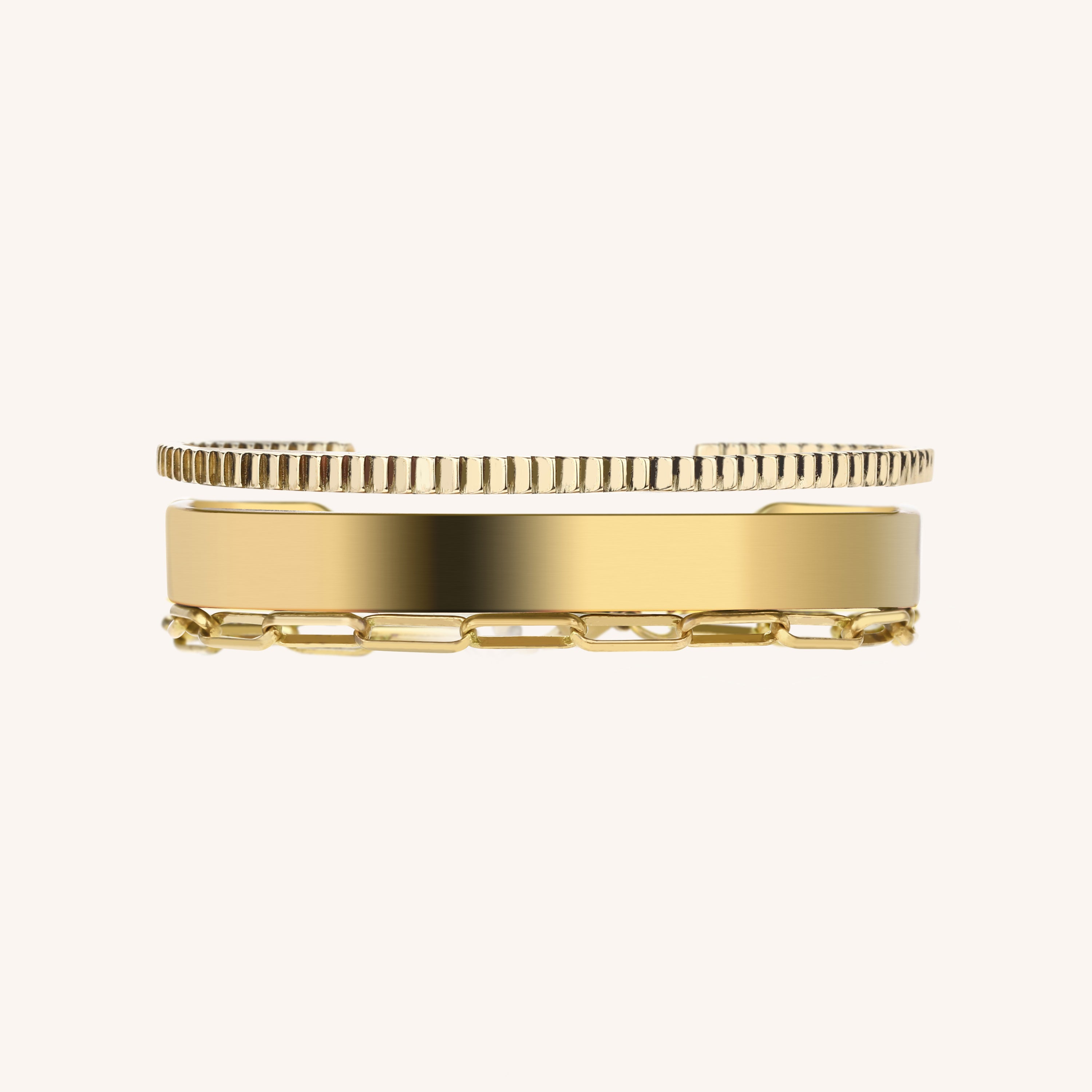 The Cleo Stacking Set is the perfect accessory for the modern, elegant woman! This set includes a series of stylish bangle bracelets that can be stacked together for a stunning statement, or worn separately for a subtle touch of class. Elevate any outfit with this versatile and chic accessory.