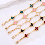 A modern talisman with timeless charm. The Midnight Clover Chain Bracelet features a delicate gold-tone link chain accented with five glossy black clover motifs, each framed in softly textured gold for subtle sparkle and dimension. Elegant yet effortless, this bracelet layers beautifully or stands confidently on its own—perfect for everyday polish or evening refinement.