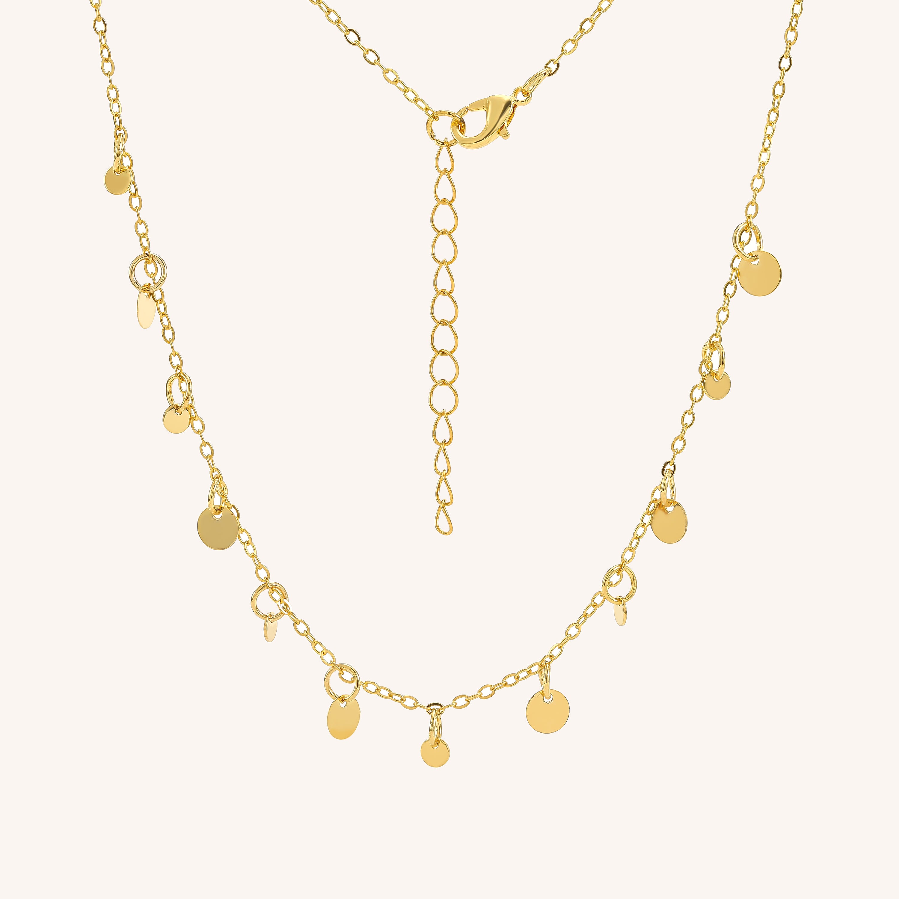 The Golden Confetti Necklace shines with multiple round, eye-catching charms that pick up the light with every move. It’s the perfect accessory to add a fun pop to any outfit.