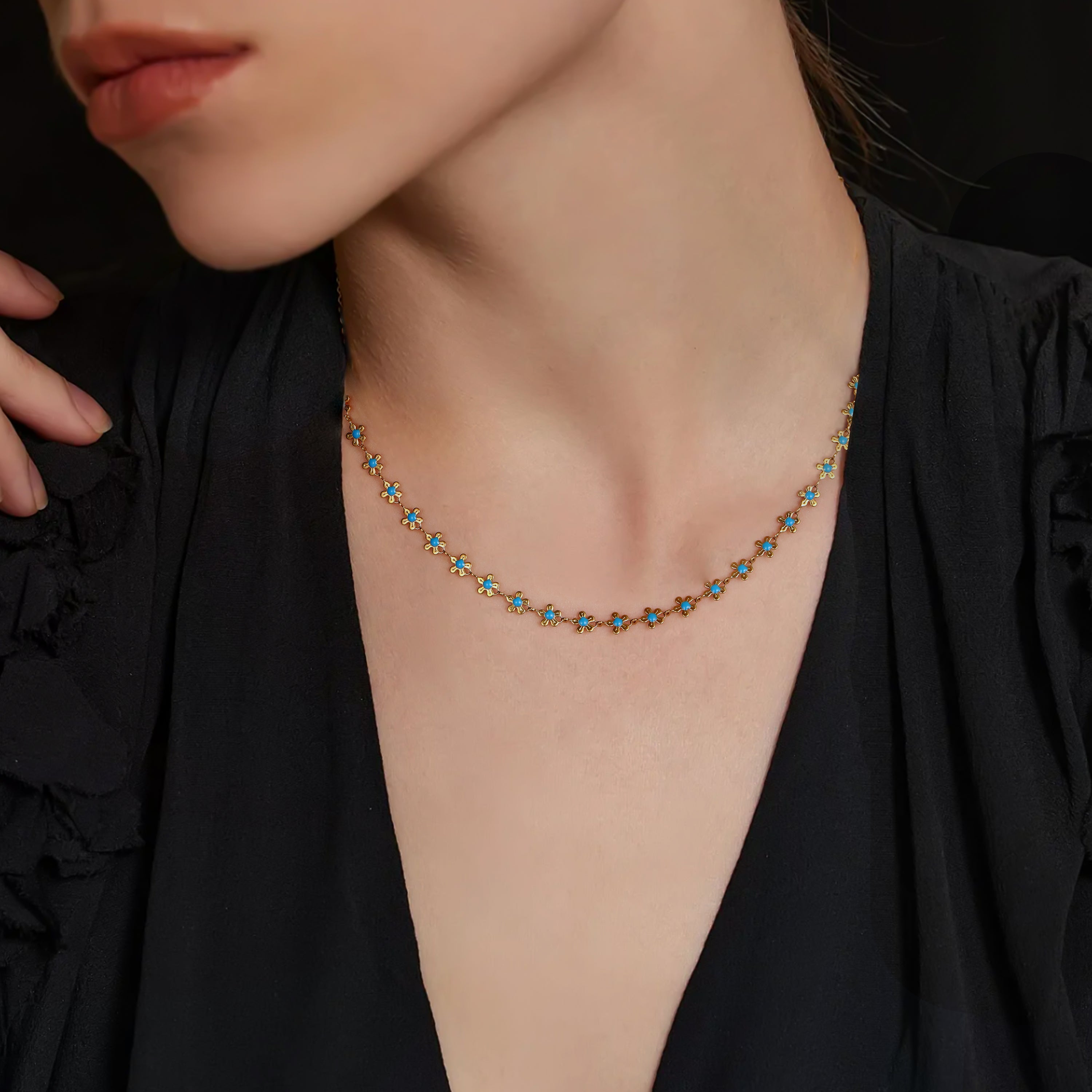Delicate daisy blooms dance along this refined choker necklace, capturing nature's understated elegance. Crafted with meticulous attention to detail, each petal is rendered in lustrous finish, creating a piece that transitions seamlessly from day to evening wear.