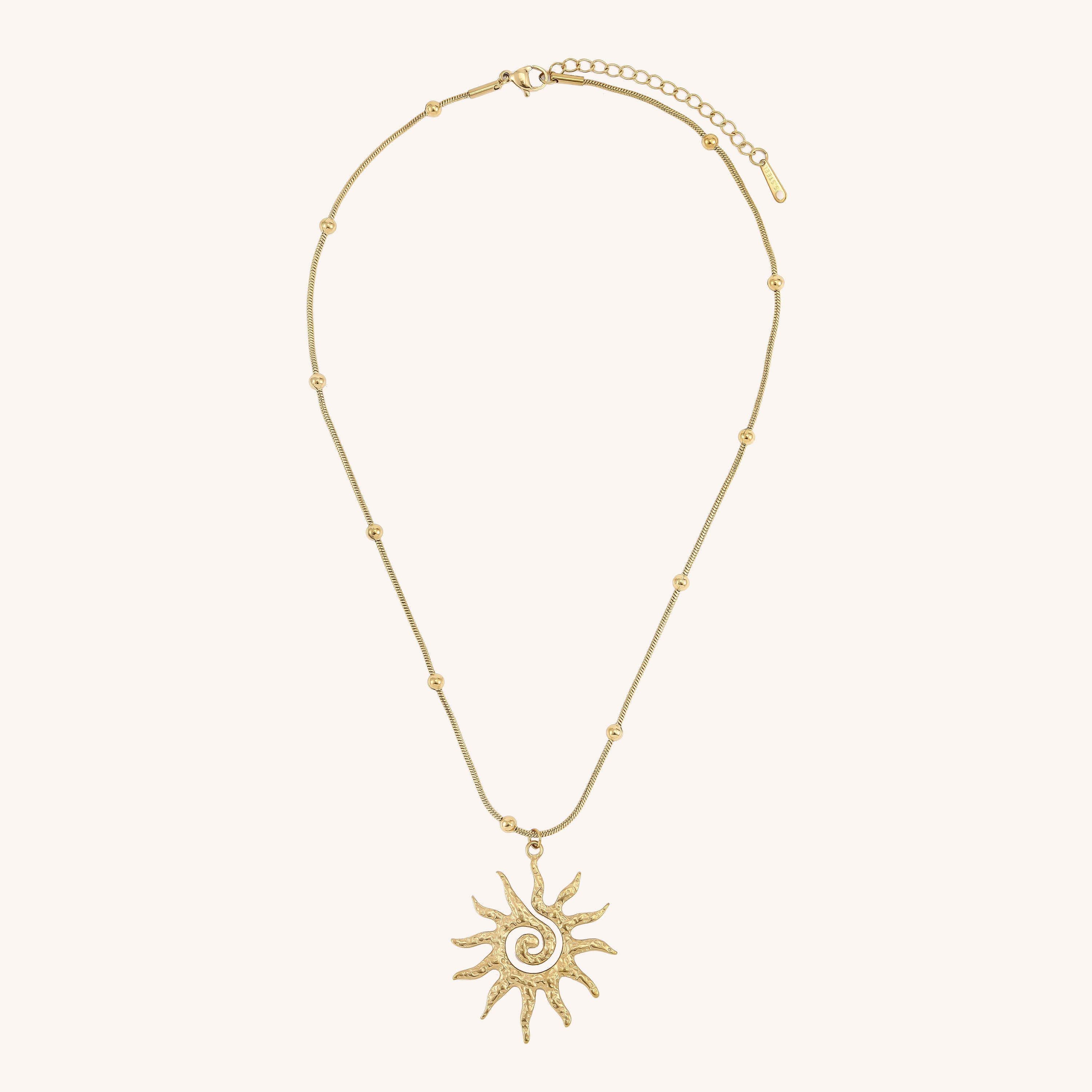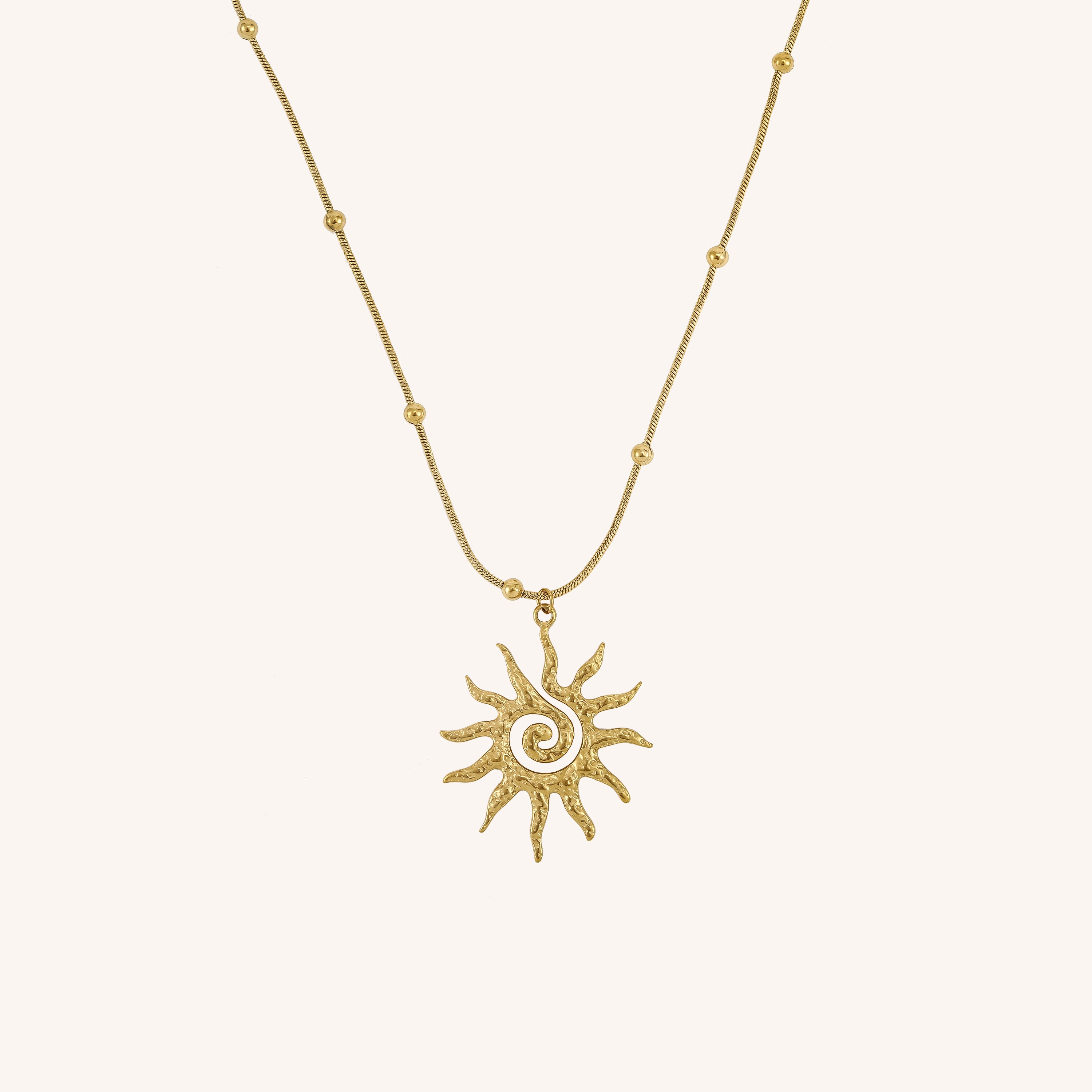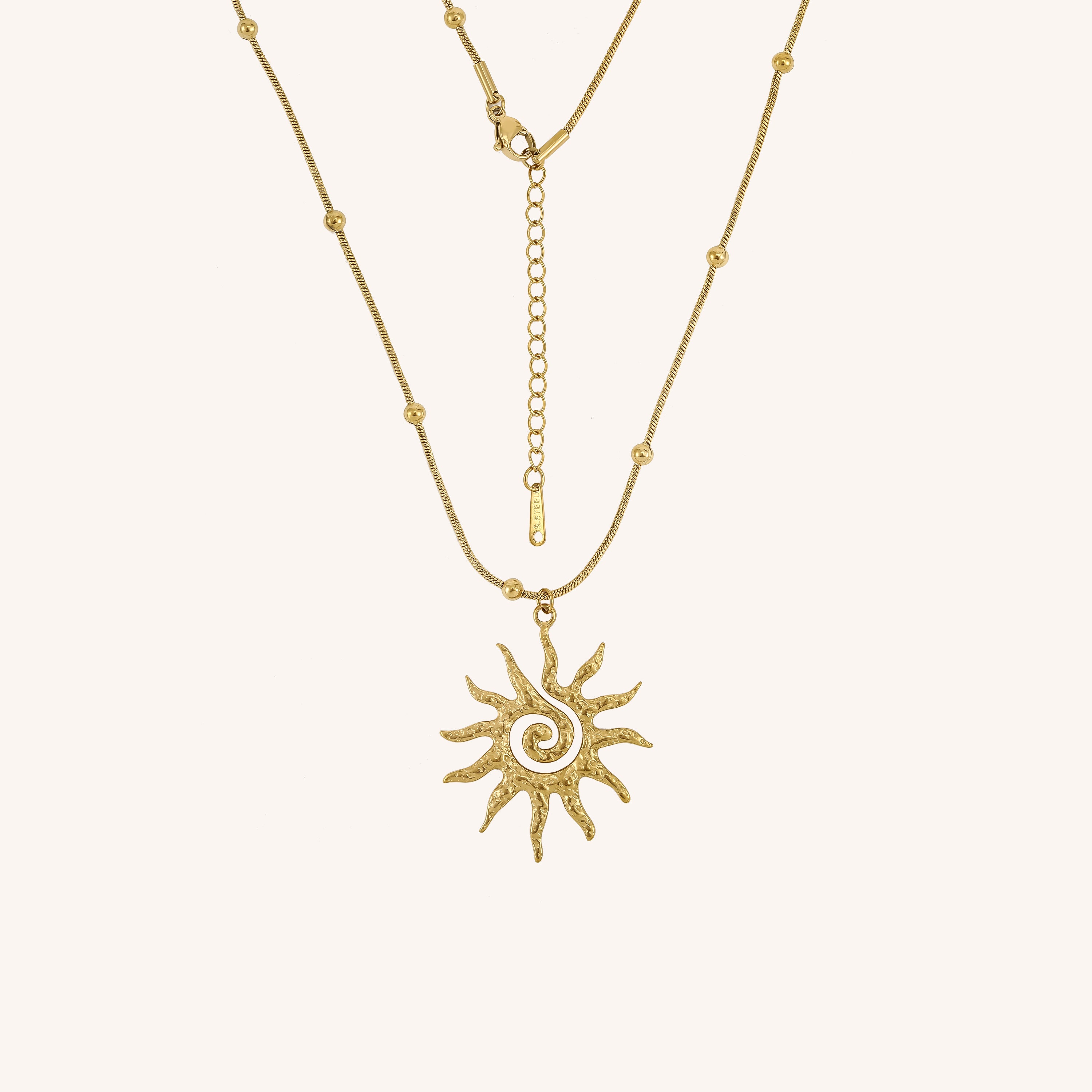 Radiant and timeless, the Endless Sun Necklace captures the warmth of golden light in an elegant pendant design. This sophisticated piece features a luminous sun motif that symbolizes renewal and boundless energy, making it a meaningful addition to any collection.