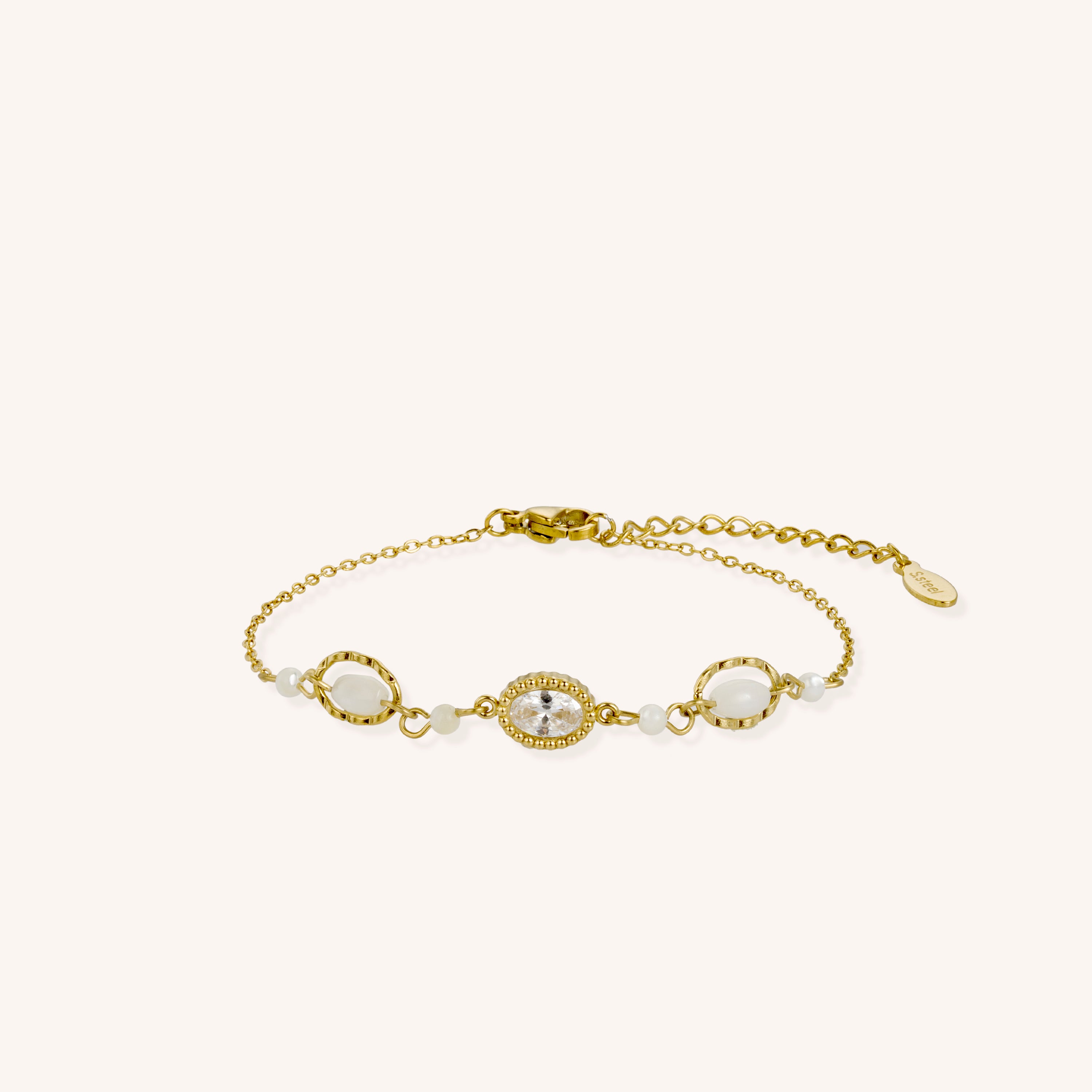 Three stunning gold sections studded with radiant stones create maximum style and draw attention. A playful statement piece that shines bright.