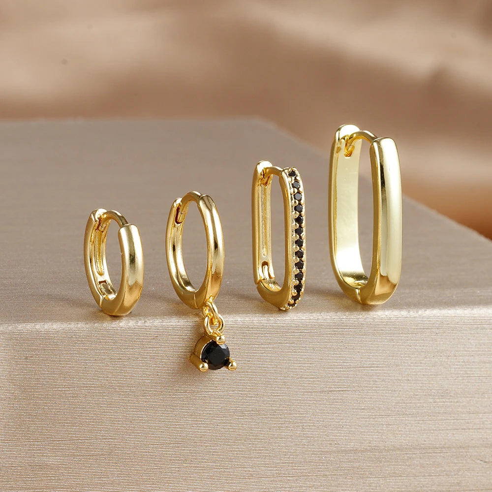 Bold, modern, and endlessly versatile, this 4-piece Geometric Gold Hoop Earring Set brings a curated mix of statement shapes to your ear stack. Featuring U-shaped hoops and sleek geometric pendants, these pieces range from minimalist to edgy, making them perfect for layering, mixing, or wearing solo. Crafted from gold-plated stainless steel, they’re hypoallergenic, tarnish-resistant, and designed for both everyday style and bold night-out looks.