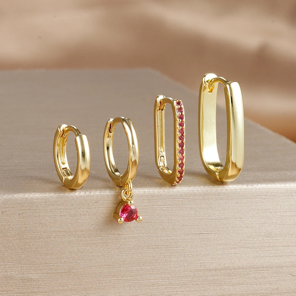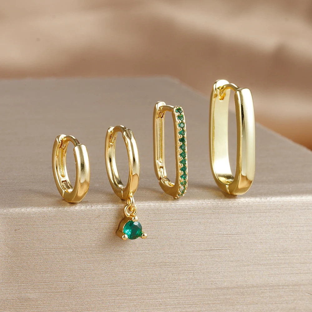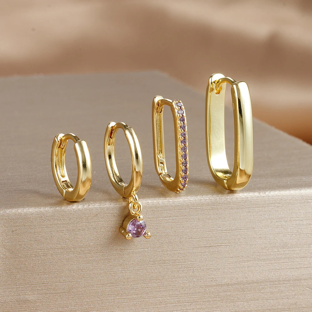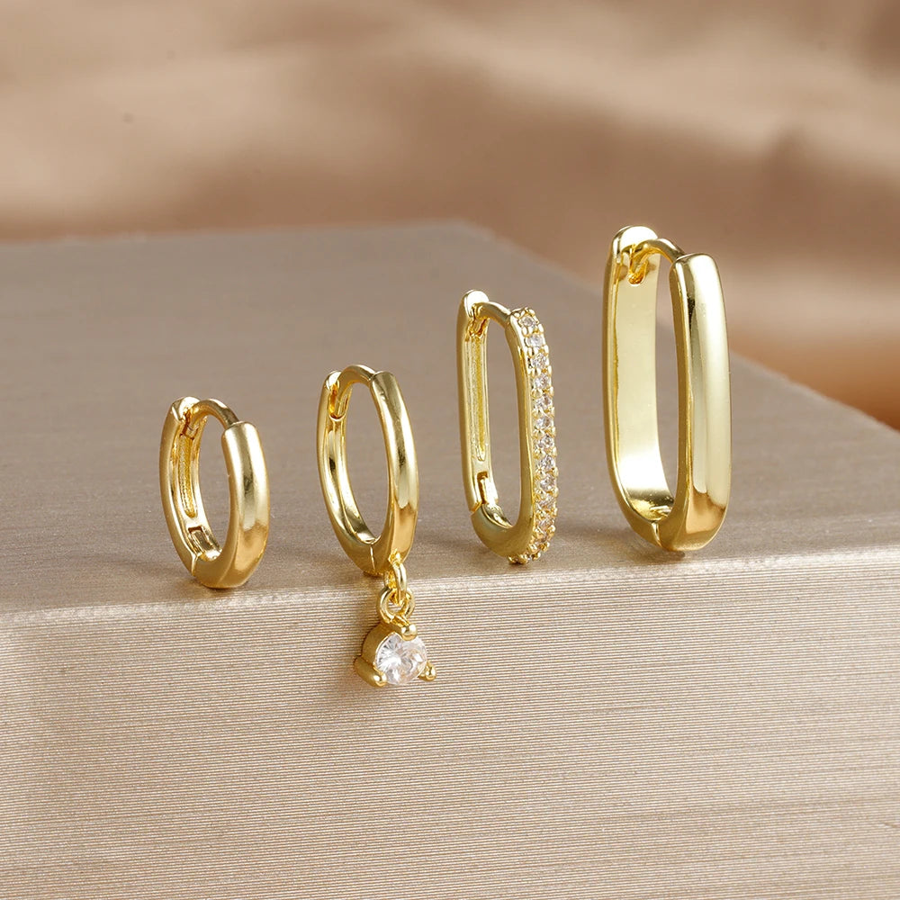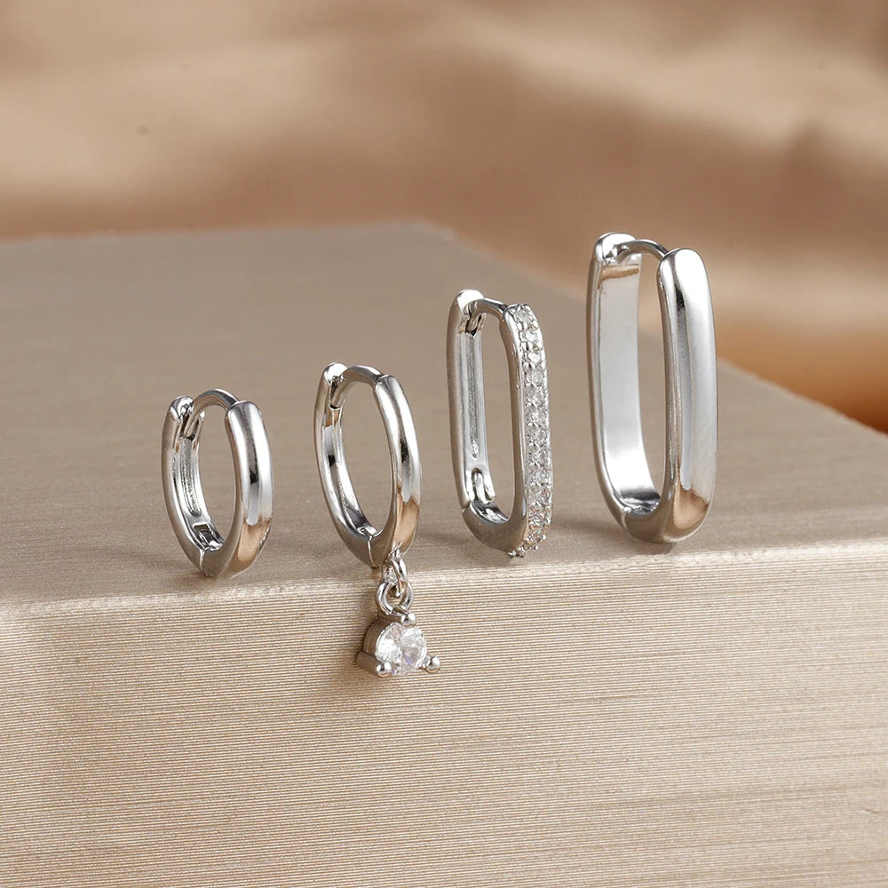 • 4-Piece Set (Hoops + Geometric Pendants)