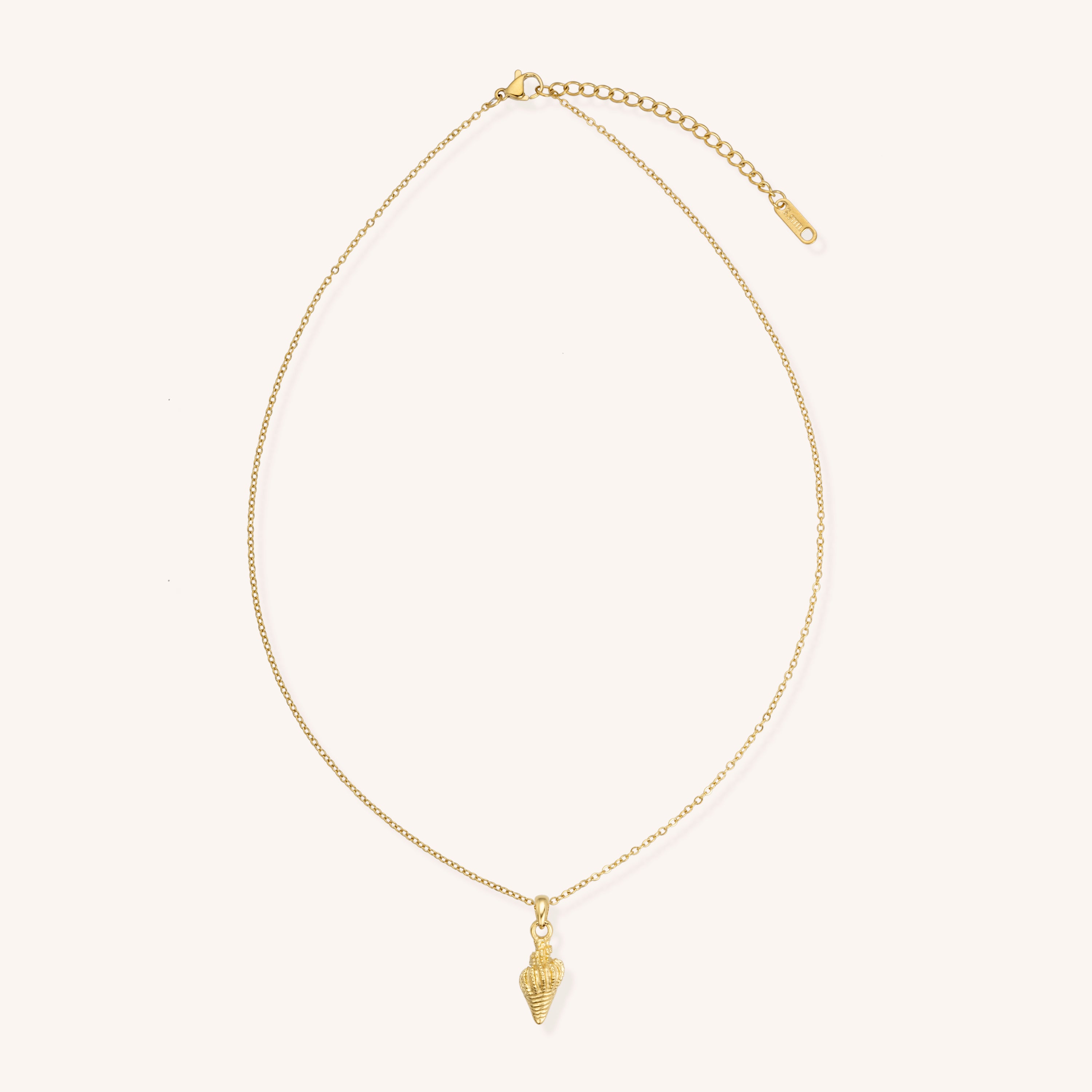 Inspired by coastal elegance, this gold seashell necklace captures the timeless beauty of the ocean. Crafted with refined detail, the delicate shell pendant hangs gracefully from a polished gold chain, creating a piece that transitions effortlessly from day to evening wear. Perfect for those who appreciate understated luxury and natural-inspired design, this necklace adds a touch of seaside sophistication to any wardrobe.