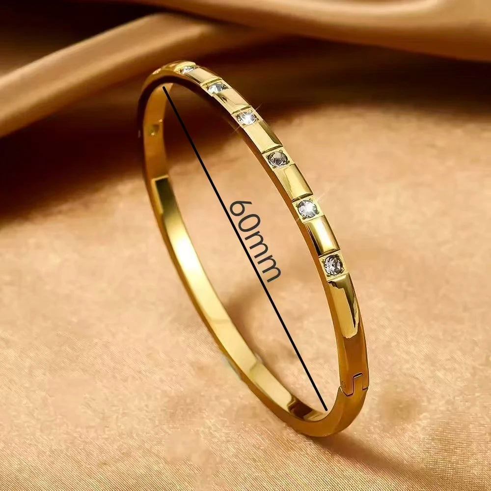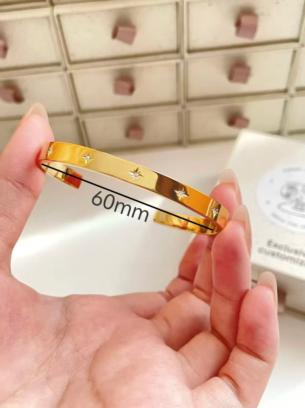 Bold with a modern edge, these Gold Stainless Steel Bangle styles add effortless attitude to any stack. Its sleek metal silhouette offers a versatile unisex look that pairs beautifully with casual fits, elevated street style, or layered boho pieces. Crafted from stainless steel with a durable gold finish, this bracelet is hypoallergenic, tarnish-resistant, and designed for long-lasting wear.