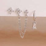 Modern, versatile, and effortlessly cool. The Luna Link Chain Hoops are designed to create a layered, curated-ear look with a single piece. Featuring a sleek geometric hoop paired with a sparkling cubic zirconia stud and a delicate double-chain connector, these earrings add movement, dimension, and just the right amount of shine.