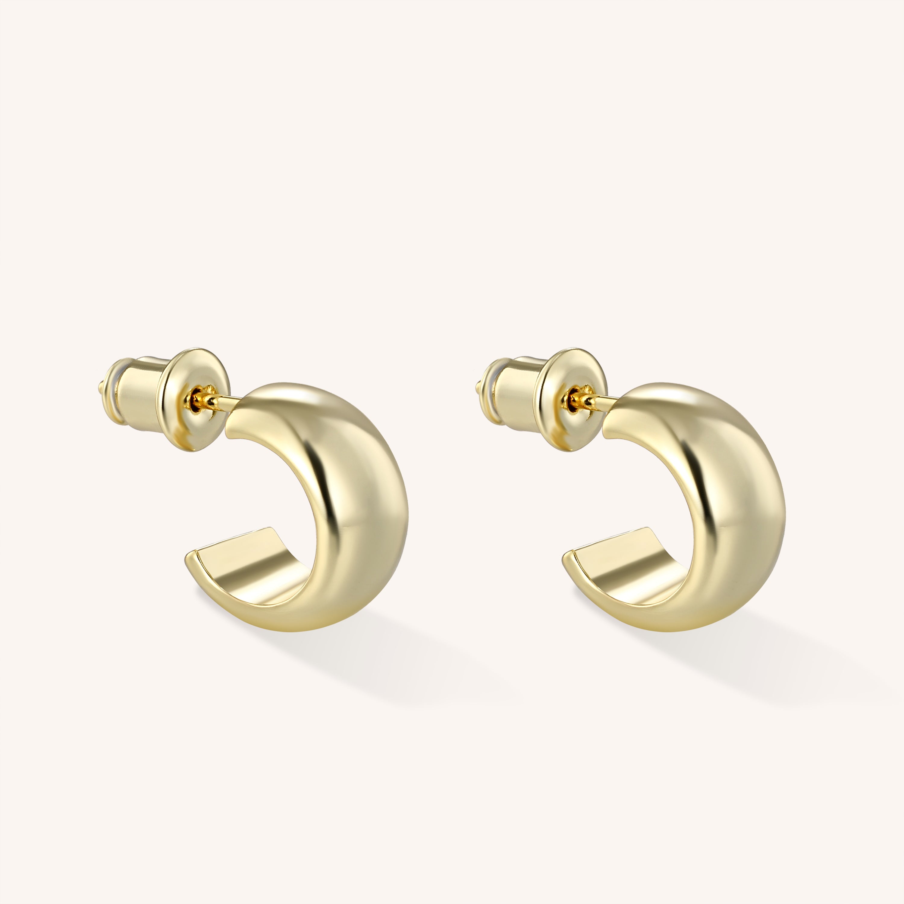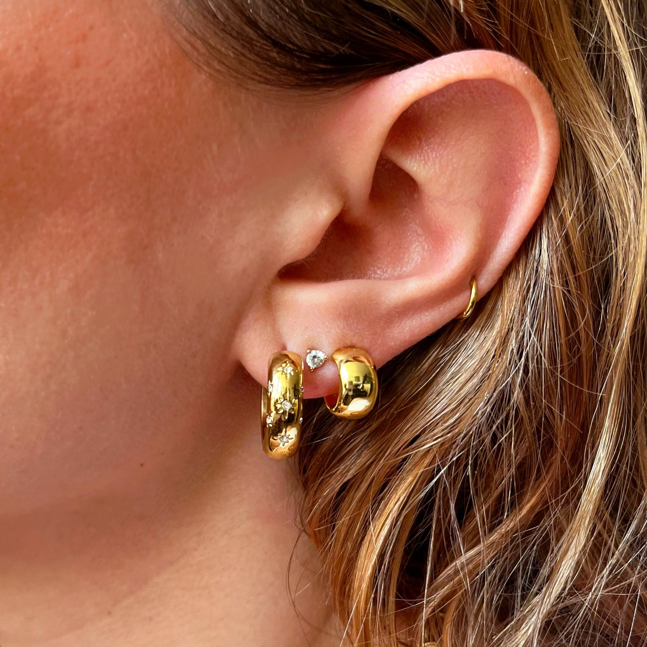These super-cute gold huggies are simple, yet stylish, adding a touch of fun to any outfit. Perfect for any occasion, they are sure to make a statement (without being too serious)!