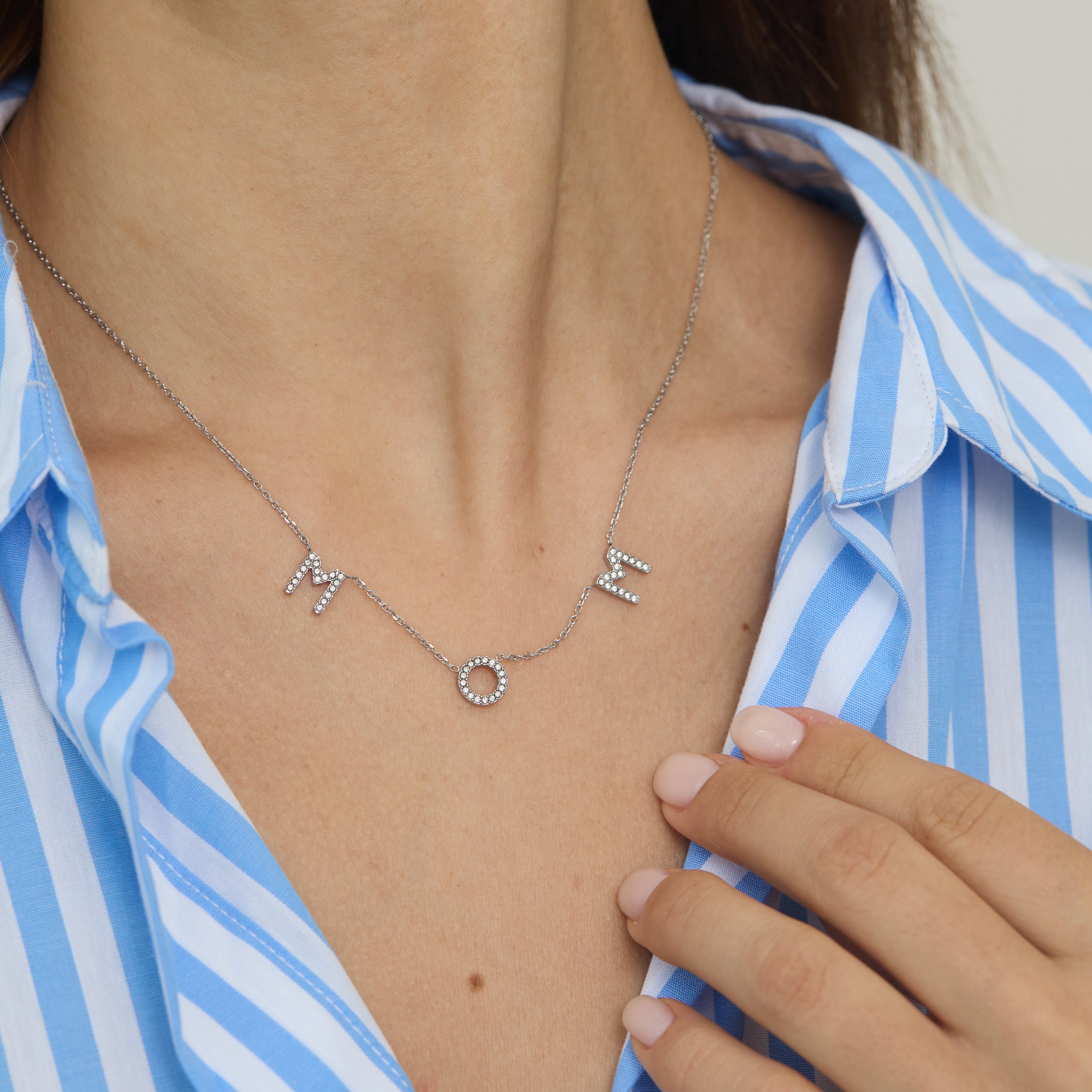 Three letters that never meant more. Swarovski crystal letters hang on a dainty cable chain. Plated in the finest 14K gold or 925 Sterling silver for the ultimate shine. Wear it proud or give the sweetest gift to show your love.