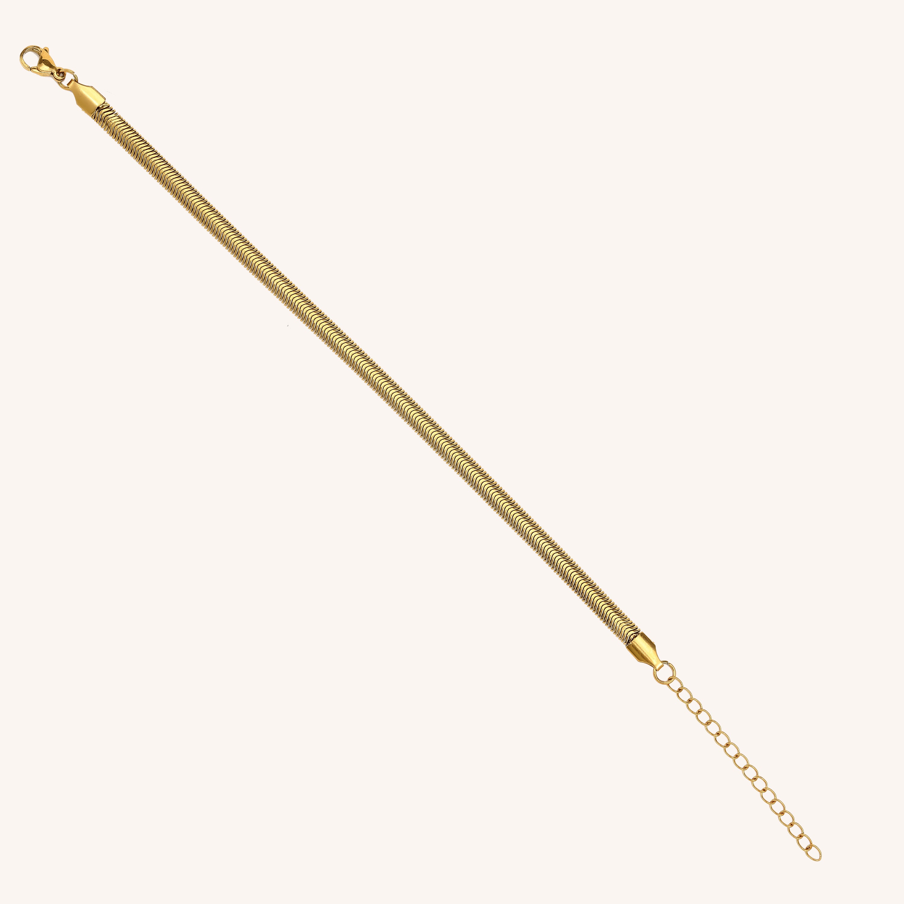 The Nickie Herringbone Bracelet combines timeless elegance with refined craftsmanship. This sophisticated piece features a classic herringbone weave that catches the light beautifully, creating subtle dimension on the wrist.