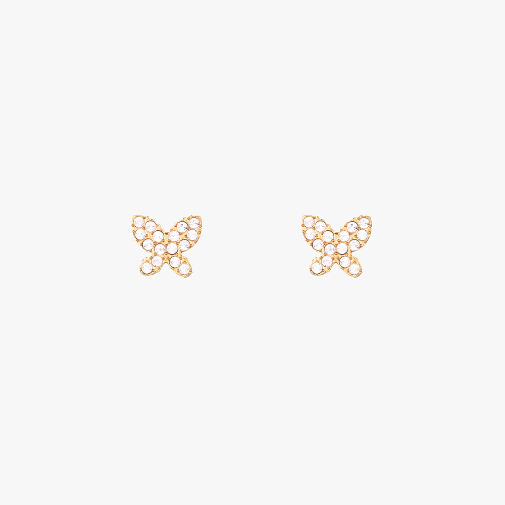 A tiny butterfly stud is embedded with micro crystals and finished in 18K gold or 925 Sterling silver. So cute it makes hearts flutter!