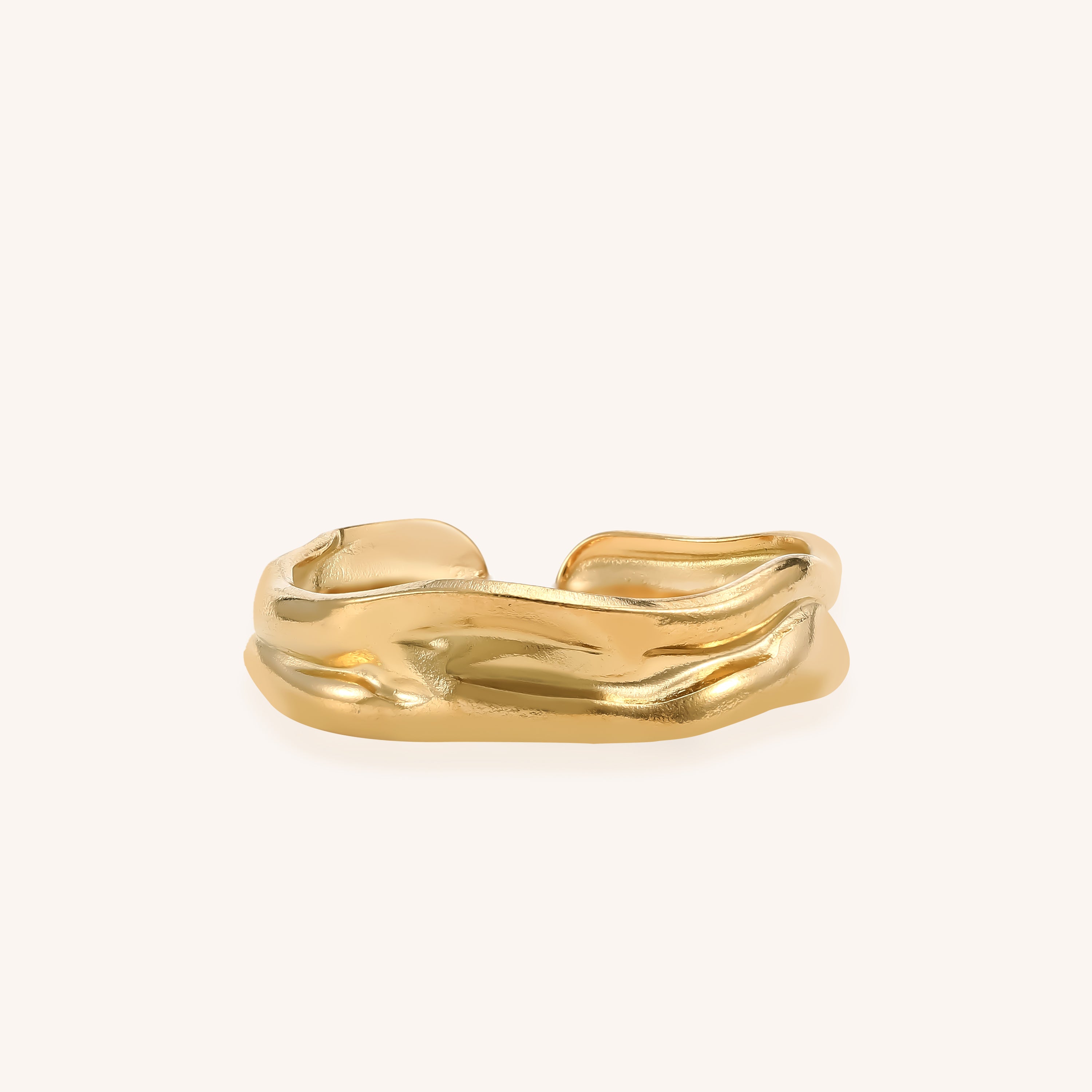 A timeless gold ring that embodies understated elegance. This refined piece features a smooth, polished finish that catches the light with subtle sophistication.