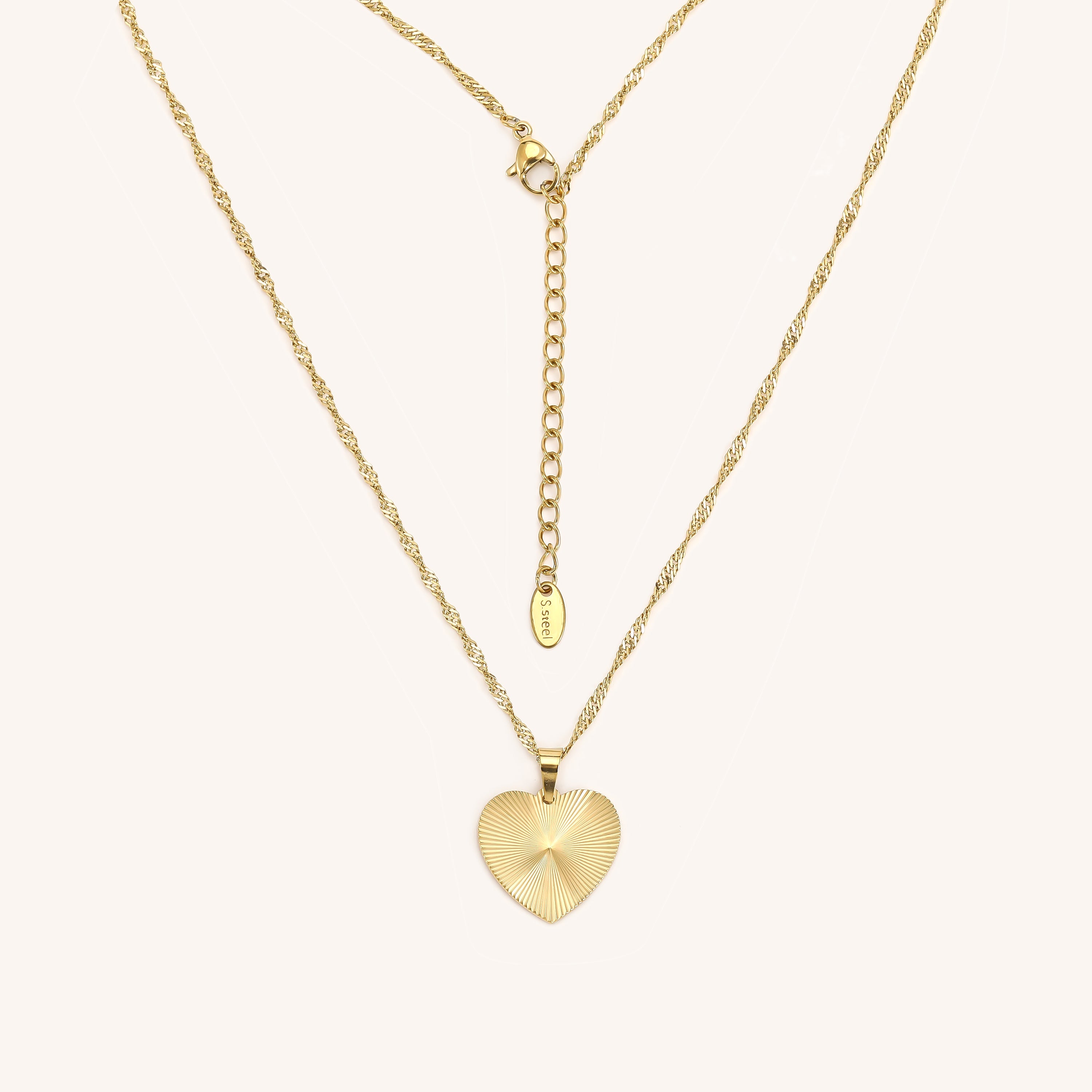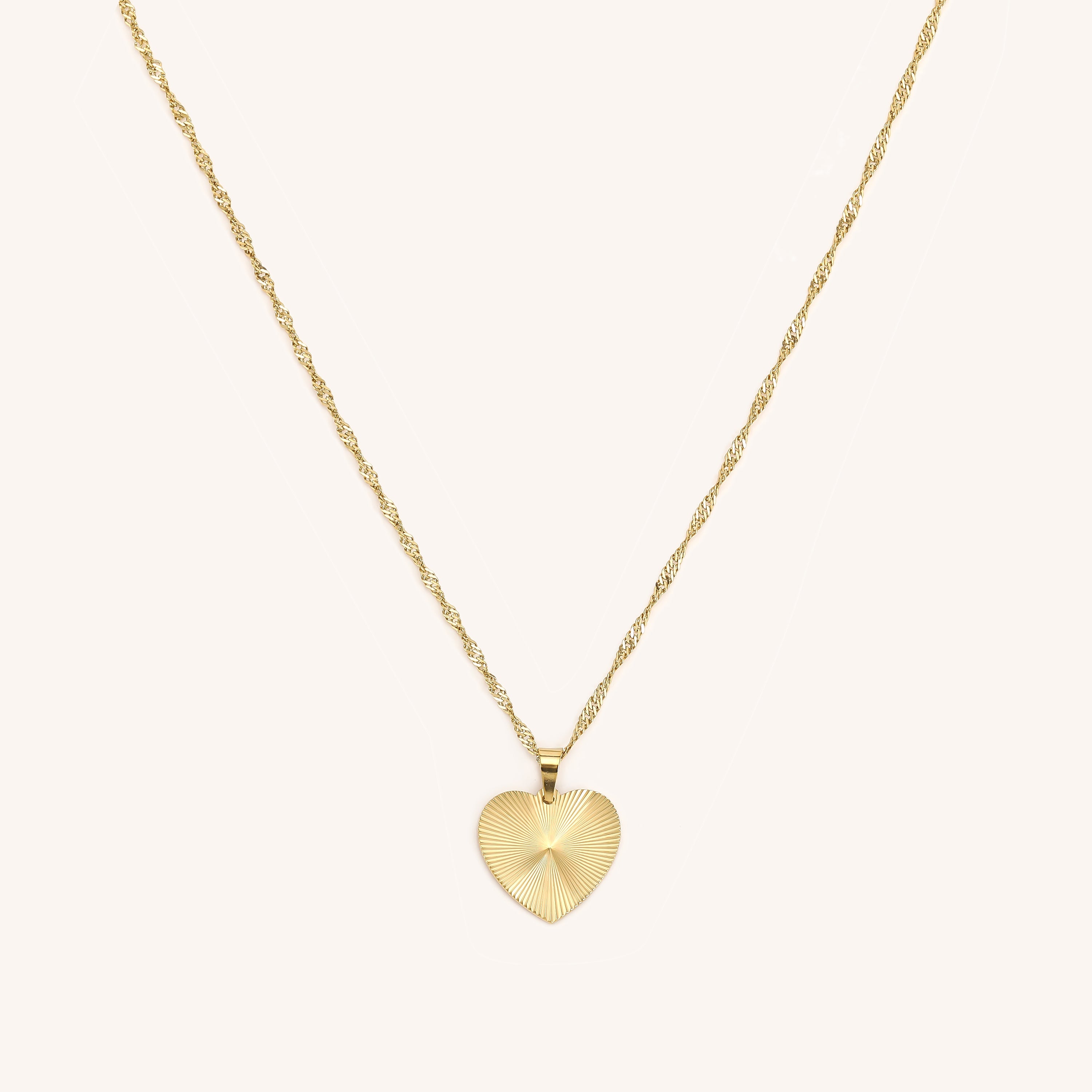 The Starburst Heart Necklace commands attention with its bold, textured design. This eye-catching piece dares to shine, adding charm to any look you wear it with.