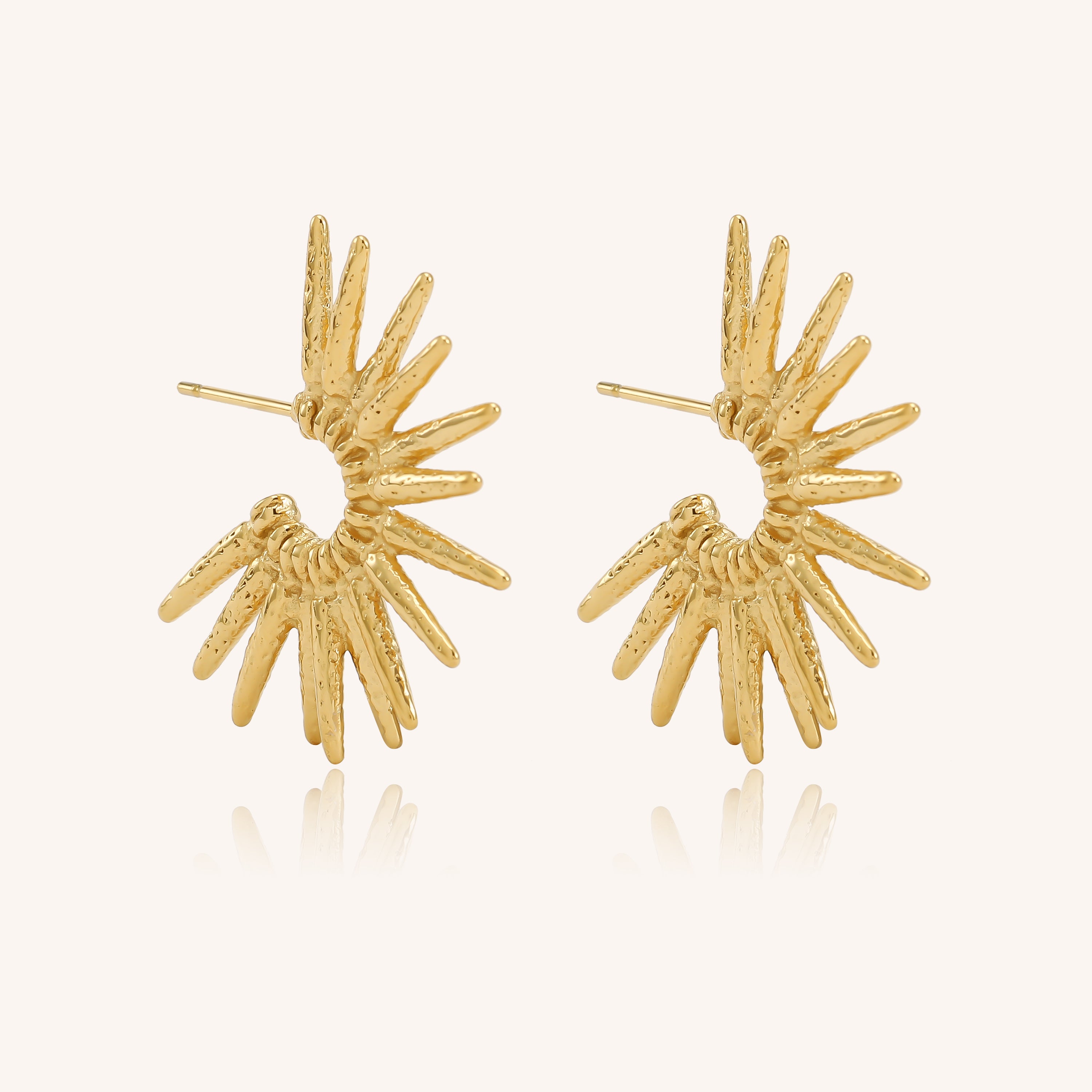Turn heads with the Starburst Hoop Earrings! Their textured design make them an eye-catching accessory that adds sparkle and flair to any outfit.