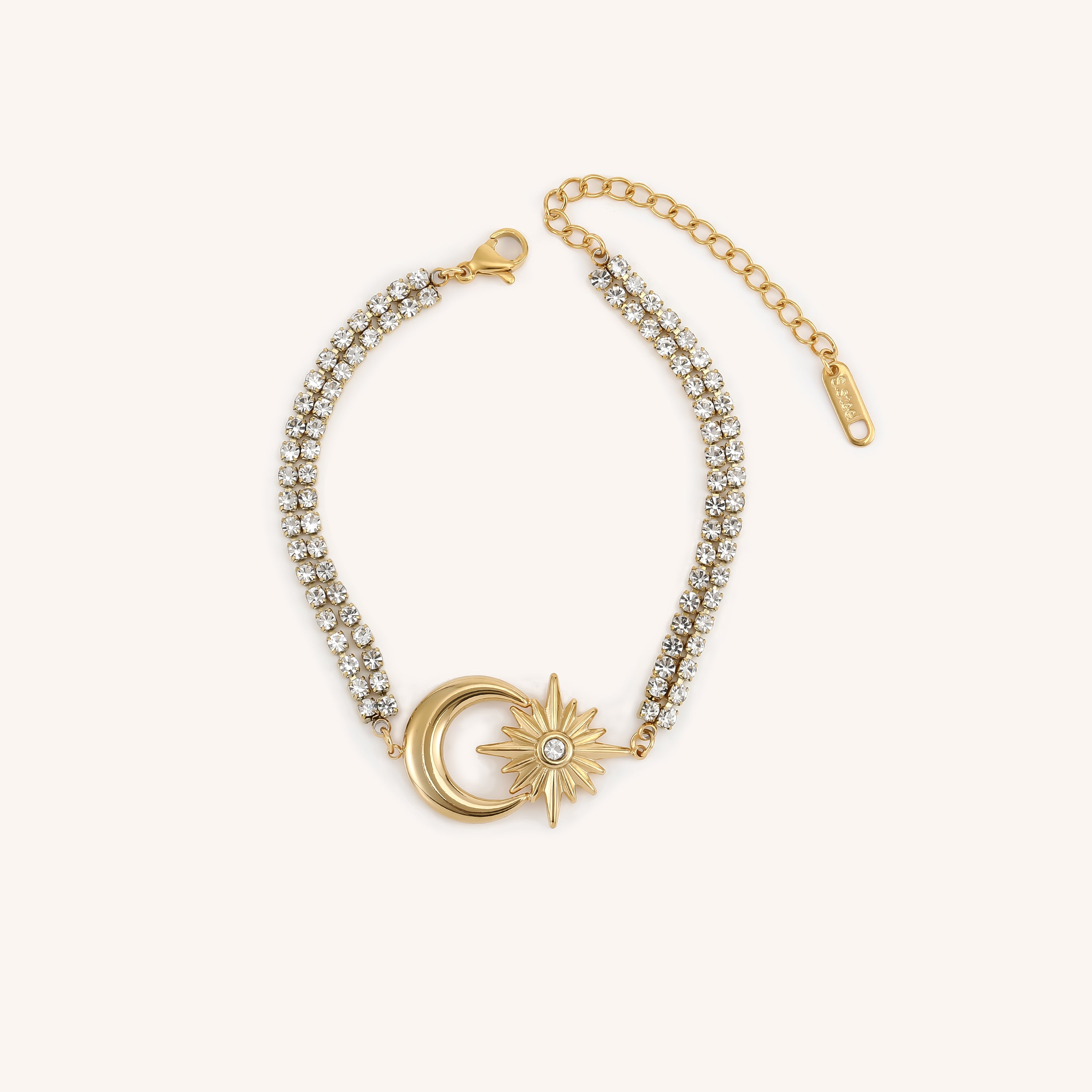 Celestial elegance meets wearable artistry in this captivating Sun and Moon Bracelet. Featuring intricately detailed sun and moon motifs, this piece captures the eternal dance between day and night.